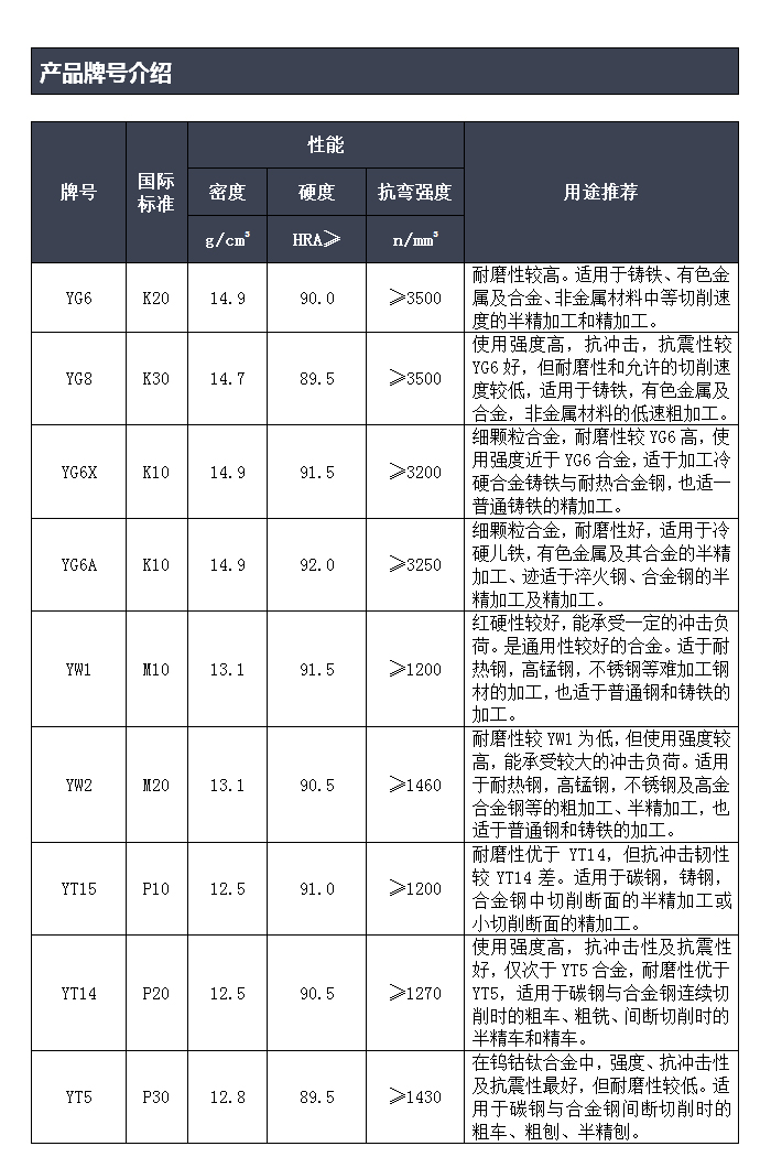 2、大部分硬質(zhì)合金以鎢、鈷為主要成分,密度很大,在運送和存儲應作重物處理,小心輕放。