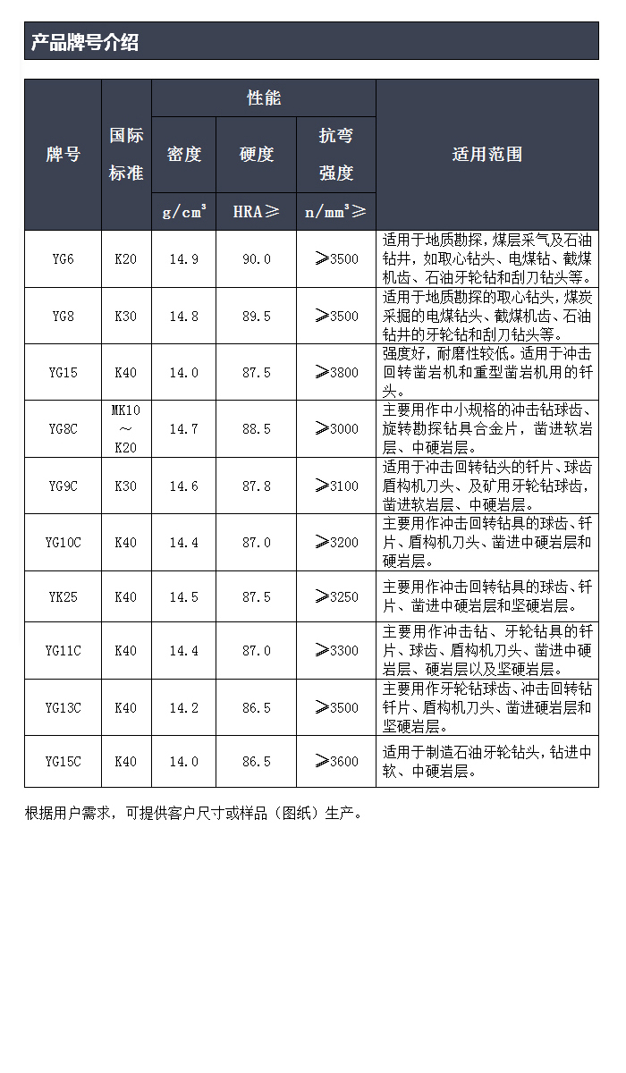 3.硬質(zhì)合金盾構(gòu)刀頭適用于隧道掘進(jìn)開山破石使用;硬質(zhì)合金球齒廣泛應(yīng)用于石油鉆井及除雪的雪犁設(shè)備中,用于制作高、中、低風(fēng)壓潛孔鉆頭,用于制作開采煤礦的截齒,用于市政工程、道路橋梁等基礎(chǔ)工程建設(shè)、煤礦和其他礦山綜合開采等。